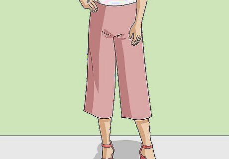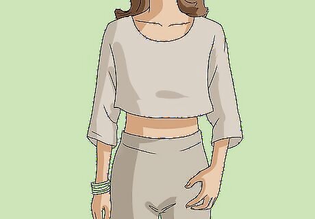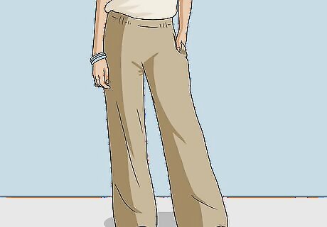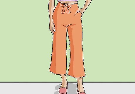 Opt for high-waisted linen pants if you want to elongate your legs. If you have shorter legs, look for linen pants with an inseam of at least 9 inches (23 cm). High-waisted pants, particularly when worn with heels, will instantly make your legs look long and lean, making them a great option for anyone who wants to rock linen pants without feeling frumpy. High-waisted linen pants are also a great option if you want to pair your pants with a crop top.