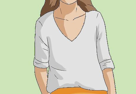Pair your linen pants with a cotton V-neck tee for a relaxed vibe. If you plan on wearing your linen pants to run errands or out for a casual afternoon with friends, try pairing your pants with a classic cotton V-neck t-shirt. The lines on the V-neck tee will give your outfit just a bit of structure, while the cotton fabric of the tee will keep you from looking too formal. Add a denim jacket and simple accessories in nude or beige tones to maintain your relaxed vibe while keeping you comfortable on cooler days.
