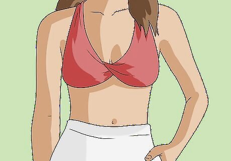 Try a crop top to make your linen pants look casual but trendy. Crop tops are all the rage right now, and with good reason. Paired with high-waisted linen pants, a crop top can accentuate your figure while keeping your pants from look too loose or frumpy. Plus, your outfit will be right on-trend. For a more forgiving yet on-trend style, try pairing straight-leg white linen pants with a fun and colorful fitted crop top. Wear with some simple nude flat sandals to keep your outfit cool and casual.