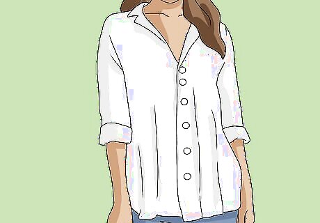 Look for structured tops to make your linen pants feel fancier. If you want to make your linen pants look a bit more formal, look for tops with clean, straight lines in more structured materials. This will give your entire outfit more definition and instantly give you a more polished, pulled-together look. For example, try pairing your linen pants with a crisp cotton button-down blouse. The clean lines and classic fit of a button-down shirt go great with linen pants and can instantly elevate your style.