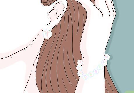 Match your pearl earrings with a pearl bracelet for an elegant look. A pearl necklace with your pearl earrings can weigh you down. Add a string of pearls around your wrist for a seamless look that balances out your outfit. Use a white pearl bracelet to match white pearl earrings for a classic outfit.