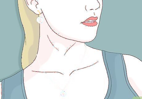 Wear a simple chain necklace to make your earrings the star of the show. Adding too much jewelry to an outfit can make it less casual. If you want to wear a necklace with your pearl earrings, choose a silver or gold chain to make your earrings pop. Pair your necklace and earrings with a low-cut top for a nice silhouette. Throw on a tank top, a cardigan, and a pair of blue jeans with a gold necklace and some pink pearl earrings for a cute outfit.