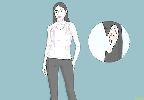 Pull your hair half-up for a breezy hairstyle that shows off your earrings. Brush the hair from your ears upward to the back of your head and secure it with a hair tie. Put on some white or pink pearl studs to have a pop of color peeking through your hair. Putting your hair half-up goes great with a sundress or a mini skirt in the summer. You can also use some dangly pearl earrings for a cute look.