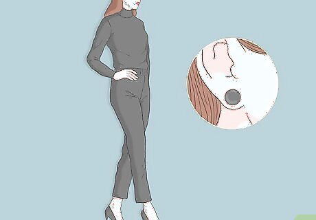 Add a modern touch to your outfit with black pearl earrings. Pair your black pearl studs or dangly earrings with an all-black outfit for a cool and chic take on these modern pearls. Or, wear a white or cream look to make your black pearls stand out. Try wearing black cigarette pants, skinny black heels, and a black turtleneck with your black pearl studs for a cohesive look. Pair a flowy white dress with some nude heels to draw attention to black dangly earrings.