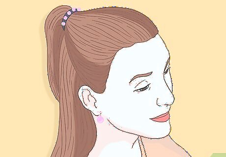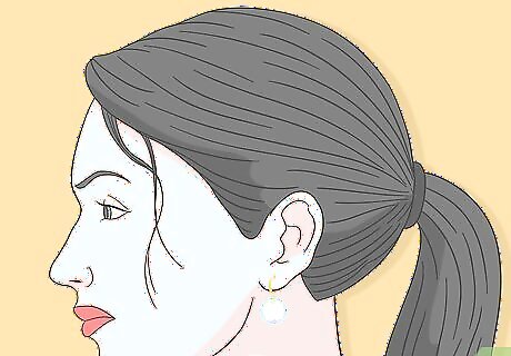 Pull your hair into an elegant up-do to show off your pearl earrings. An elegant up-do will draw attention to your earrings in the best way. Put your hair into a low bun or a high ponytail to wear your earrings to a formal event. You can slick your hair back with gel or leave a few strands to frame your face and complement your pearl earrings.