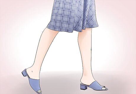 Slip on some heeled slides with a dress for a trendy, comfortable option. You can dress up any outfit with a pair of heeled slides. Try wearing slides with a small, blocked heel for a modern look. A pair of slides with a tall, skinny heel will pair well with a nice dress, and a pair of slides with a wedge heel will go well with everything from dark denim to a pencil skirt. Make sure the heeled wedges are comfortable if you will be wearing them for a long period of time. Try walking around in the heels before purchasing them to ensure they are the right fit, height, and comfort level for you.