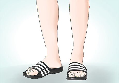 Groom your feet before you wear slides. Wearing slides means you will be exposing your toes and feet. Before sliding into these sandals, make sure your toenails are trimmed and clean. You should also treat any toenail fungus or athlete’s foot before baring your toes in slides. Consider getting a pedicure before you wear slides. Try exfoliating your feet and painting your toenails at home if you’re not into professional pedicures.