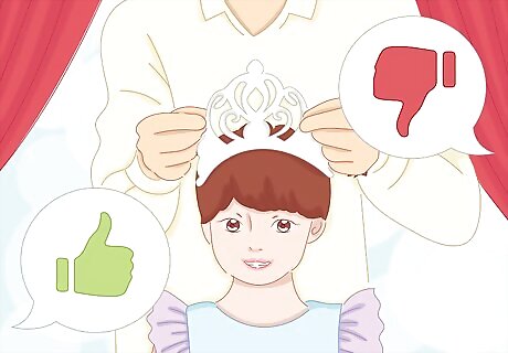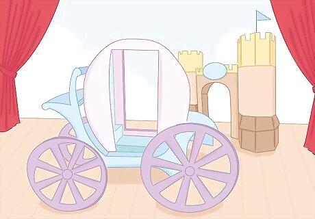 Prepare props. Use your creativity to come up with props, and make sure they are allowed at the pageant. You may want to incorporate backdrop pieces into the routine. Make the prop(s) relevant to the song or routine. For example, if the routine is about a fairy tale, you may want a large cardboard castle or a fake carriage. Pageants may ban props that can affect the stage or audience, such as bubble machines or live animals.