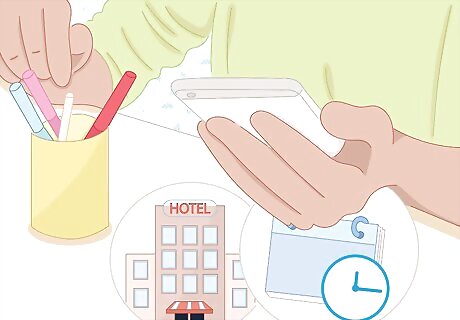 Make travel arrangements. Book a room in the hotel where the pageant is being held. Even if you live nearby, it’s a good idea to have a room where your child can prepare, as well as take a nap if needed. Plan to arrive early or the night before so that you can set up your child’s stuff in the room and take your time. Find out what the hotel’s check-in and check-out times are.