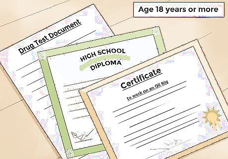 Determine whether you meet the basic requirements. While entry-level jobs on oil rigs are plentiful and technically don't require any experience, few companies will hire a "green hand" to work on their billion-dollar platforms. In general, oil rig workers only need to be 18 or older, have a high school diploma, and pass a pre-employment drug test. Successful applicants have usually pursued oil rig training independently or bring transferable skills to the job. All workers must meet certain minimum standards and certifications to work on an oil rig.