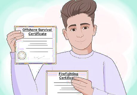 Complete the required certifications. All offshore workers are required to earn an Offshore Survival & Firefighting certificate. Specialized workers like electricians, scaffolders, and welders must hold a state-issued license or certificate in order to work on a rig.