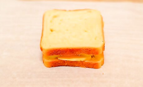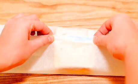 Bring smooth (non-torn) edges together above the sandwich and line them up so the edges are both facing upwards.
