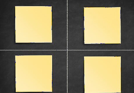 Separate your wall or board into four sections. These will represent each act of your story, with two boxes representing act two. This is because the second act is where 50 percent of your story will take place.
