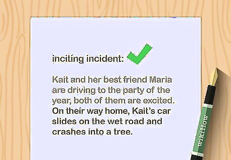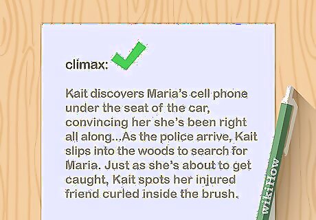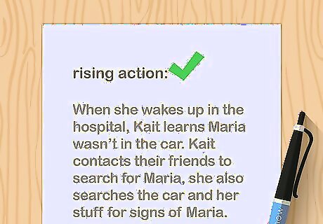 List out your moments of “rising action." These are the major plot points that drive your story forward. You don’t need a detailed list of impacts or reactions, just a general idea of what happens when. For your non-fiction subject, consider what concepts, ideas, or events are critical to answering your guiding question. Be sure to note where you need to do more research, this will help you expand later.