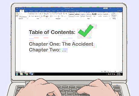 Create a “table of contents” for your book. The amount of sections you use can be as numerous as chapters in a book, or as sparse as general concepts that you’ll be focusing on -- whatever you feel will guide your work easiest. You can create this as a digital document, or write it out on paper, whatever feels best to you. Be specific as you can. Dale Carnegie’s “How to Win Friends and Influence People” is separated into six parts, with titles like “Six Ways to Make People Like You,” and “Letters that Produced Miraculous Results.” These titles give both the reader and the writer an idea of what to expect (and even research) for each part.