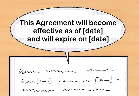 Determine the length of coverage. A service contract will usually be a term contract, meaning it will stay in effect for a period that is defined in the contract. The length of coverage can be defined by any number of factors, but is usually defined by a length of time or by the occurrence of some event. If your service contract's effective period will be defined by time, consider stating: "This Agreement will become effective as of [date] and will expire on [date]." If your service contract's effective period will be defined by a set of event's it may look something like this: "This Agreement will become effective on the date Buyer purchases vehicle from Seller. This Agreement will terminate when Buyer's vehicle surpasses [number of miles on odometer]."