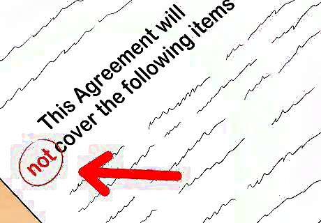 List any exclusions to coverage. Once you have listed what will be covered under your service contract, you will have to define what will NOT be covered under the service contract. For example, if you have purchased a sound system from a seller, that seller may request language that looks like this: "This Agreement will not cover the following items: All labor for maintenance and repair for any equipment that is not part of the System; all labor for the movement, removal, reconfiguration, or other changes to any portion of the System; all charges by any third parties in connection with the services Sellers provides under this Agreement, including utilities and other contractors; all state and local taxes or fees imposed with respect to the services provided under this Agreement; and any cost, including labor, necessary to repair equipment due to improper use or storage of the System."