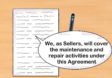 Include a near-exhaustive list of what will be covered. Once you have defined the parties, the product, and the length of coverage, you will begin drafting the body of the service contract. One of the most important provisions of your contract will be the discussion of what will be covered under the agreement. In a service contract, coverage will include any number of maintenance or repair activities. For example, if you have purchased a sound system from a seller, that seller may request language that looks like this: "We, as Sellers, will cover the maintenance and repair activities under this Agreement: "Sellers will provide an annual inspection of Buyer's sound system; Sellers will provide initial testing and installation services to Buyers; and Sellers will provide Buyers with repair services for any repairs needed as a result of normal wear and tear." Any list you draft can be expanded and as detailed as you feel is necessary. In general, you will want to be as detailed as possible so there is no misunderstanding between parties.