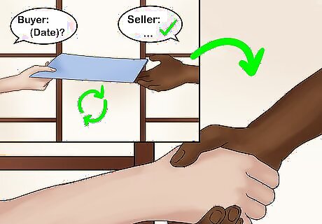 Make an offer. When the contract is ready, send it to the other party. The other party will examine the contract to ensure that the terms suit them. In some cases the other party will sign and return the contract right away. More often, he or she will respond with a counteroffer. If there is a counteroffer, be sure to read any changes carefully and decide whether they are acceptable before you sign. If you want to speed things along you can include a date by which the contract should be signed, addressed or rejected. Otherwise, the other party is obligated to respond "within a reasonable amount of time," but this is highly subjective. You can revoke an offer that has not yet been accepted. For example, if you present someone with an offer and he is considering it but has not accepted the offer, you can tell him that you have changed your mind. However, once the offer has been accepted, you've entered into a binding agreement.