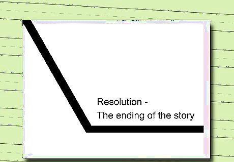 Decide on the resolution. Finally, there is the resolution. This is the ending of the story, where all the conflicts are resolved. This is on the right horizontal line of the diagram. This is what the final product should look like. The witch's hat diagram is good for novels+ and short stories. NOT for books that are in or part of a series.