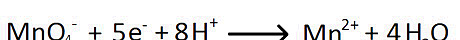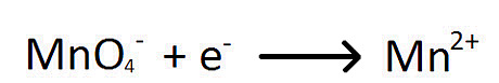 Identify the species that it is oxidised/reduced to. In our example, permanganate in reduced to manganese ions. Place this species on the right of the equation.