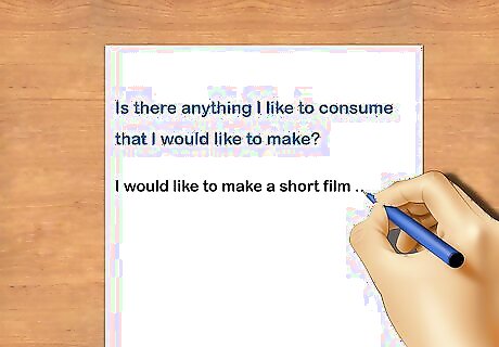 Ask yourself more specific questions. Having developed a working list, it can help to ask more specific questions as a way of generating more ideas that are personally meaningful to you. These questions should take a personal tone. Examples of such questions include: Who would I like to meet in my lifetime? Is there anything I like to consume that I would like to make? (for example, if you enjoy watching films, would you like to make your own film?) When do I find myself at my most content and happy? What other things could I do to replicate those circumstances?