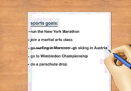 Consider the first list your "rough draft". Add to it, or take things away. After all, it is just a personal list. It is yours to expand, change, or reduce. Keep this original list and continue to work with it. The list itself is important, because it serves as a reminder of all the things you want to do. Be willing to change your list, but also think carefully before making changes. If you take adding and subtracting from the list seriously, you are more likely to take the items on the list seriously.