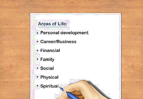 Consider different areas of your life, so that you can look at different aspects separately. Maybe you're someone how spends twelve hours a day at work, but make sure you don't only think about work or business goals. Varying your goals across different areas of your life will help you develop a list that can improve all aspects of your life.