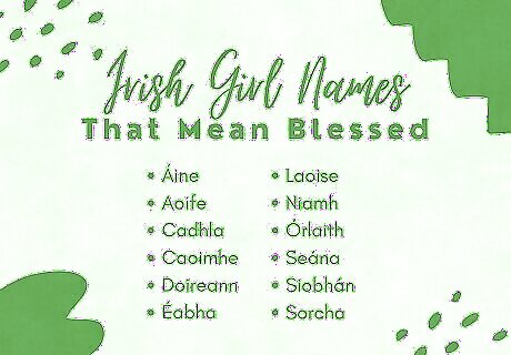 Plenty of Irish girl names mean “blessed” or are related to being blessed, with positive meanings like “joy” and “radiant.” Choose one of these beautiful names to let your little one know she is truly a gift: Áine (Awn-yah): “Splendor” or “radiance” or “joy.” Aisling (Ash-ling): “Dream” or “vision.” Aoife (Ee-fa): “Joyful” or “radiant.” Aoibheann (Ay-veen): “Blessed beauty” or “radiant beauty.” Cadhla (Ky-lah): “Graceful” or “beautiful.” Caoilfhionn (Kee-lin): “Slender and blessed” or “Slender and fair.” Caoimhe (Kee-va): “Precious” or “beautiful” or “gentle.” Caragh (Kar-ah): “Beloved” or “friend.” Doireann (Deer-in): “Blessed daughter” or “fair daughter.” Éabha (Ay-va): “Life.” Laoise (Lee-sha): “Light.” Niamh (Neev): “Bright” or “radiant.” Órlaith (Or-lah): “Golden princess.” Seána (Shaw-nuh): “God is gracious.” Sinéad (Shin-aid): “God is gracious.” Siobhán (Shiv-awn): “God is gracious.” Sorcha (Sur-ka): “Bright” or “radiant.”