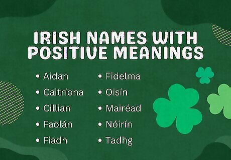 Looking for more Irish names with beautiful, positive meanings? Check out our complete lists of Irish boy names and Irish girl names, or try our Irish Name Generator! Some of our favorite Irish names include: Aidan (Ay-dahn): “Little fire” (masculine). Caitríona (Kat-ri-awn-uh): “pure” (feminine). Cillian (Kihl-ee-ahn): “Church” or “bright-headed” (masculine). Faolán (Fway-lawn): “Little wolf” (masculine). Fiadh (Fee-ah): “Wild” (feminine). Fidelma (Fih-del-ma): “Ever-good” or “enduring” (feminine). Oisín (Oh-sheen): “Little deer” (masculine). Mairéad (Mar-ade): “Pearl” (feminine). Nóirín (Noh-reen): “Noble” or “valor” (feminine). Tadhg (Tieg): “Poet” (masculine).