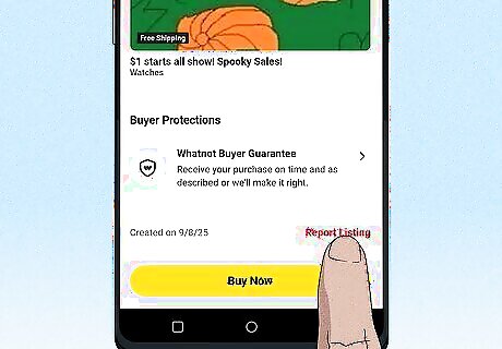 Report scammy sellers to Whatnot. If you suspect that a seller is trying to scam someone else (or if you've been scammed by a seller already), you can report that seller to Whatnot. Here's how to do it: During a livestream: Tap on the seller's username. Tap Report. Follow the on-screen instructions to finish the report. From a DM: Tap the three-dot icon in the upper-right corner of the screen. Tap Report. Follow the on-screen instructions to finish the report. From a product listing: Tap on a product listing or pinned item. Tap Report Listing. Follow the on-screen instructions to finish the report. From a profile (Android & web only): Tap the three-dot icon in the upper-right corner of the screen. Tap Report. Follow the on-screen instructions to finish the report. Via email: Send an email with the information about the seller to [email protected]. Reports will always be anonymous.