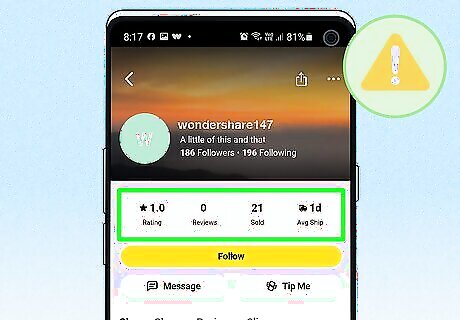 Avoid buying from sellers with no reviews or bad reviews. If a seller has no reviews yet, it's best to avoid purchasing from them, especially if you're making a big purchase. It also should go without saying to avoid sellers with bad reviews; however, you may need to take reviews with a grain of salt. If you see that a seller has only a few bad reviews and more positive ones, it's probably safe to buy from that seller. If the bad reviews seem outrageous or unfair to you, it's also probably safe to buy from that seller, especially if they have mostly positive reviews. It is possible to get legit items from a seller with no reviews, but it's best to avoid these sellers if you're worried about getting scammed.