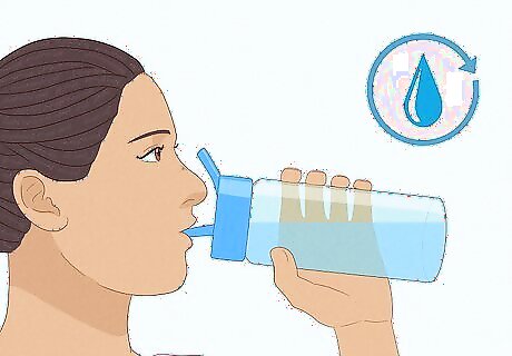 Stay hydrated. Drinking plenty of water will keep your skin soft and supple, which may help prevent stretch marks. Most people need to drink between 11.5 to 15.5 cups (2.7 to 3.7 L) of water every day. To get more water, carry a reusable water bottle with you everywhere you go. If you don’t like the taste of water, try adding fruit slices or flavoring to the water.