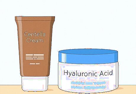 Apply a stretch mark cream with hyaluronic acid, vitamin A, or centella. You can purchase over-the-counter stretch mark creams at any department store or online. For best results, use the creams to treat new stretch marks, and rub them into your skin every day. Look for these ingredients that are the most effective at reducing their appearance: Hyaluronic acid: Hyaluronic acid hydrates your skin and may help with elasticity. Vitamin A/Retinoid: Retinoids, which come from vitamin A, can improve your skin’s texture and hydration. However, don’t use them while you’re pregnant or breastfeeding. Centella: Studies show that centella helps reduce the appearance of stretch marks and may help stop them from growing. Additionally, it may stimulate cell production and fibroblasts, which produce collagen. Stretch mark creams start at around $10-15, though they often cost in the $30 to $50 price range.
