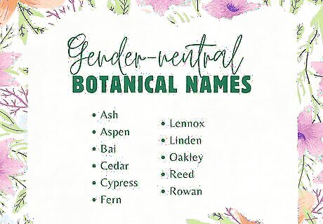 There are lots of gender-neutral names that refer to plants or trees. So, choose one of these botanical-inspired names for your baby boy: Ash: After the ash tree. Aspen: After the aspen tree. Bai: “Cedar tree” or “oak tree,” Chinese origin. Cedar: After the cedar tree. Cypress: After the cypress tree. Fern: After the leafy plant. Lennox: “Elm grove,” Scottish origin. Linden: After the linden tree. Oakley: After the oak tree. Reed: After the grass-like plants near lakes and rivers. Rowan: After the rowan tree.